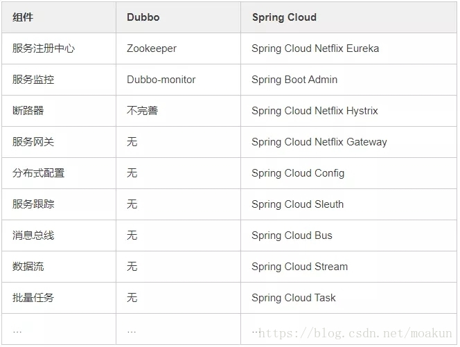 Dubbo 和 Spring Cloud 有什么区别?