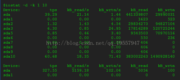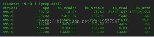 tps:该设备每秒的传输次数。一次传输即一次I/O