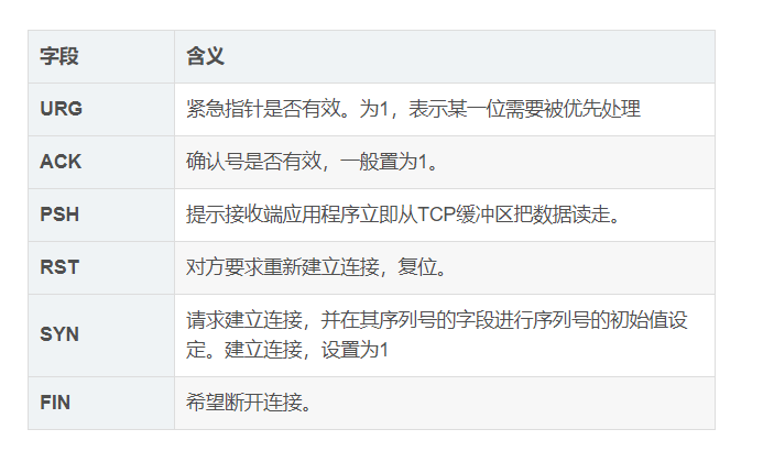 确认ACK:占1位,仅当ACK=1时,确认号字段才有效。ACK=0时,确认号无效