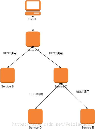 在微服务中,通常根据业务模块分服务,项目中前端发起一个请求,后端可能跨几个服务调用才能完成这个请求(如下图)。